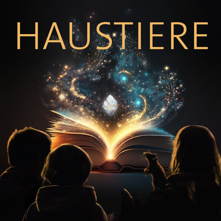 Die Lehrkraft spielt der Klasse den Podcast bis Min. 4:29 vor und beginnt danach ein kurzes Klassengespräch zum Thema Haustiere: „Welches Haustier wünscht du dir? Welche Haustiere habt ihr zu Hause?“