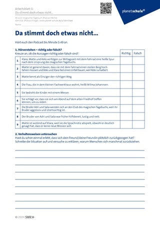 Material: Podcast, ggf. Abspielgerät, Arbeitsblätter 1-4, Infoblatt, weiße Blätter, Stifte
