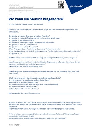 Podcast gemeinsam von 10:53 bis zum Ende anhören, anschließend Bearbeitung von Arbeitsblatt 4 (Wo kann ein Mensch hingehören?).