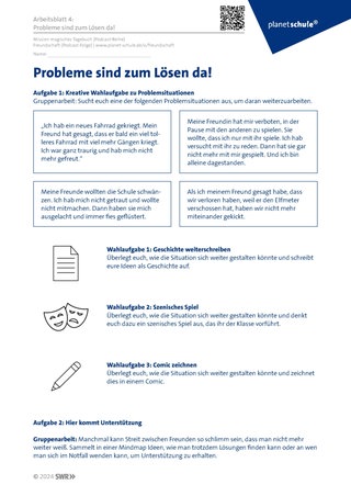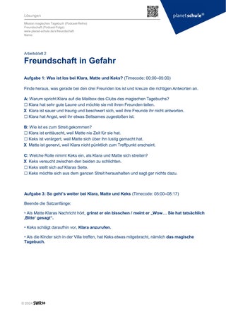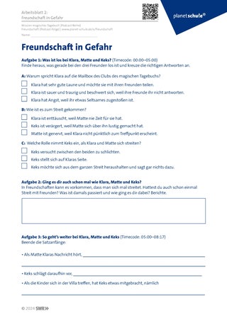 Material: Podcast, Abspielgerät, Arbeitsblatt 2: Freundschaft in Gefahr