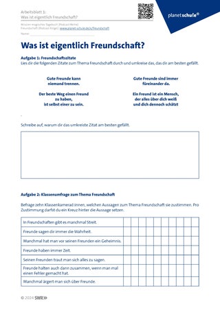 Material: Arbeitsblatt 1: Was ist eigentlich Freundschaft?