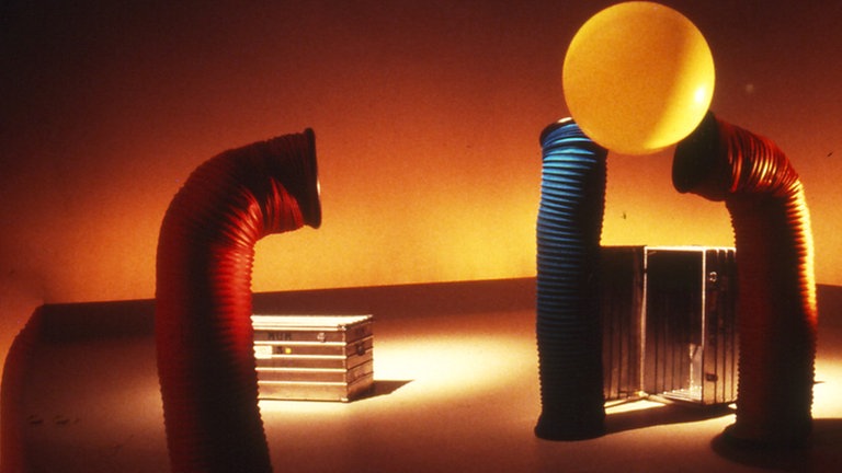 Episode 1 B erzählt von drei Röhren, die mit einem Ballon spielen.