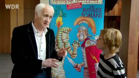 Apart from being Huck McKenna's personal hero, Terry Deary is one of the most successful British authors of all times, as well as a tv presenter, playwright, actor, theatre-director, museum manager and drama teacher. It's actually easier to name the few things we know Terry Deary isn't – he's not a historian, he's not a successful pupil and he's not particularly fond of authority such as politicians, teachers or the Queen. Which may be one of the reasons so many children love his books: He sticks it to the man – in other words: In his stories, the rich and powerful are always the villains. "The heroes are the little people", as Deary says. Little people like the ones he comes from.