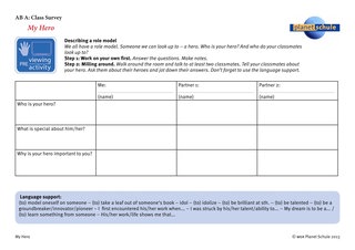 "Pre-viewing activties" schaffen bei den Schülerinnen und Schülern eine thematische Erwartungshaltung. In der Reihe "My Hero" geht es um persönliche Idole. Die Schüler überlegen sich zunächst allein, wer ihr persönlicher Held oder ihre persönliche Heldin ist und stellen dann zwei oder drei Mitschülern Fragen zu ihren Helden.