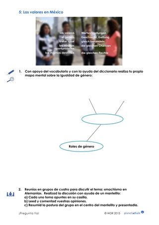 Als Vertiefung des Wortfeldes können die Schülerinnen und Schüler auf Arbeitsblatt 5 eine eigene Mindmap zum Thema Geschlechterrollen entwerfen. Ihre Ergebnisse diskutieren sie anschließend anhand von Leitfragen in Kleingruppen.