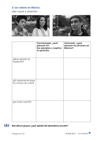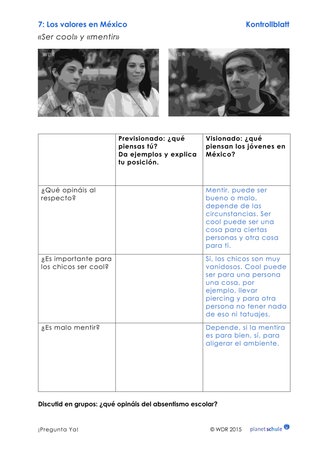 Als Hinführung zum Themenkomplex „cool sein/lügen“ notieren die Schülerinnen und Schüler zunächst auf Arbeitsblatt 6 ihre eigene Meinung darüber, was cool ist. Anschließend sehen sie den Filmclip noch einmal an und notieren in der zweiten Spalte auf Arbeitsblatt 6, welche Meinung die Filmprotagonisten haben. Abschließend diskutieren die Schülerinnen und Schüler in Kleingruppen über, die Haltung der Protagonisten über das Schuleschwänzen.