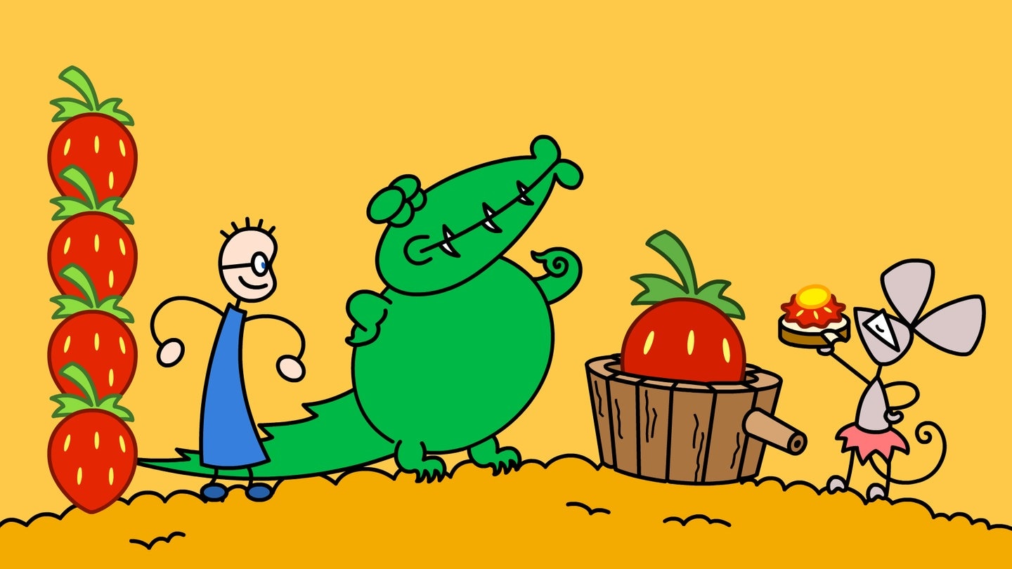 In der vierten Rechenstunde des Lernspiels „Rechnen mit TOM“ geht es um die Einführung der Subtraktion im Zahlenraum bis 5 und um das Rückwärtszählen – immer eines weniger. Außerdem lernen wir den international anerkannten Erdbeerquetscher kennen. Im Film erfahren wir dann, dass dieser noch viele weitere Talente und Diplome hat.