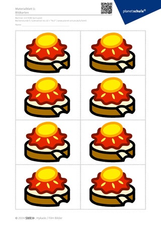 Die Lehrkraft bereitet Bildkarten vor (Materialblatt 1) und Zettel mit Zahlen von 1-10. Sie heftet die Bildkarten für alle sichtbar an die Tafel/an eine Pinnwand. Ein:e Schüler:in darf nach vorne kommen und einen Zettel mit einer Zahl ziehen und die Zahl laut nennen. Es dürfen daraufhin so viele Gegenstände von der Tafel/Pinnwand entfernt werden, wie die Zahl auf dem Zettel zeigt. Im Plenum: Wie viele Gegenstände sind noch zu sehen? Die Kinder verbalisieren gemeinsam: z.B.: „neun minus drei ist sechs“. Die Lehrkraft entscheidet, wie lange das Spiel gespielt wird.