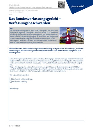 Material: Arbeitsblatt 8 ‚Das Bundesverfassungsgericht-Verfassungsbeschwerden‘