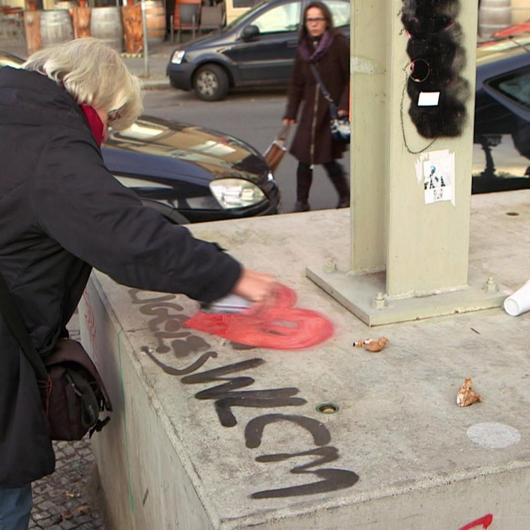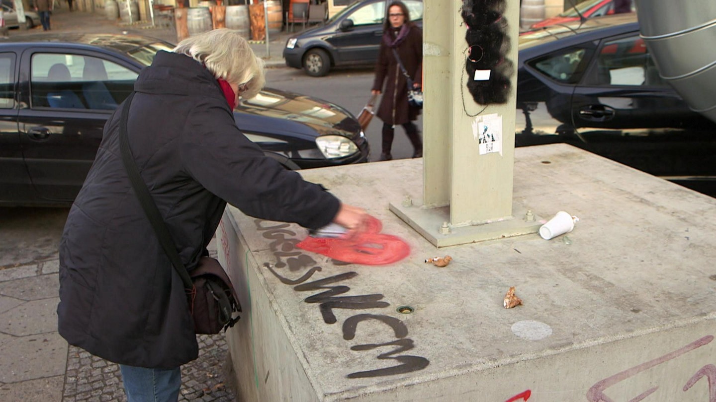 Eigentlich mag Irmela Mensah-Schramm Graffiti. Aber bei Hakenkreuzen und rechten Parolen sieht sie rot – und übermalt sie kurzerhand. Doch sie bekommt Probleme mit dem Gesetz. Die Frage: Sachbeschädigung oder gute Tat?