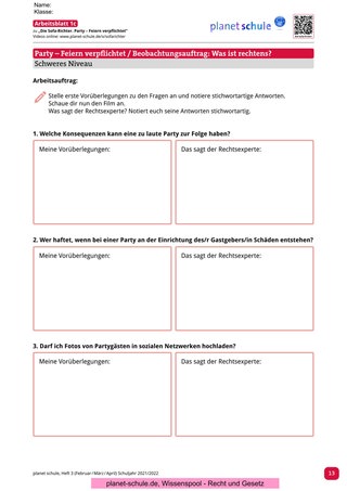Argumentieren, diskutieren, sich eine Meinung bilden, urteilen sowie Kritik an den eigenen Bewertungen zu tolerieren, sind wichtige Schlüsselkompetenzen, die Jugendliche im Laufe ihres Schullebens erwerben sollen. Die Reihe „Die Sofa-Richter“ fördert mit lebensechten und schülernahen (Rechts-)fällen diese Kompetenzen. Der Film „Party – Feiern verpflichtet“ kann bereits ab Klasse 6 im Unterricht eingesetzt werden. Die anderen beiden Filme eignen sich vor allem für höhere Klassen und könnten ab Klasse 8 im Unterricht behandelt werden.