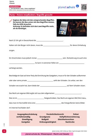 In der Erarbeitungsphase sollen wichtige rechtliche Begriffe in einen Lückentext eingesetzt werden (Arbeitsblatt 2). Die Ergebnisse werden im Plenum gesichert.