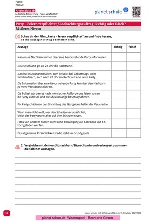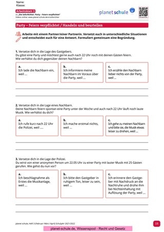 | Abschluss Party – Feiern verpflichtet / Die „Polit-Putze“ | Sind Regeln und Gesetze denn immer notwendig? | Plenum | Materialblatt 2 |