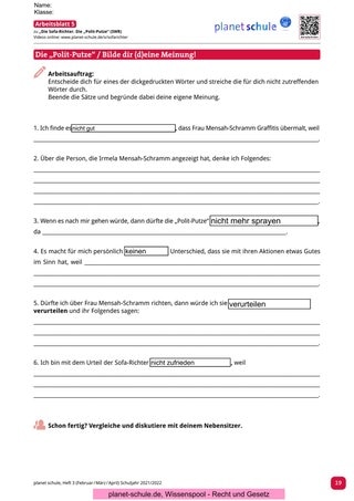 Rollenspiel: Die „Polit-Putze“ vor Gericht | Einzelarbeit