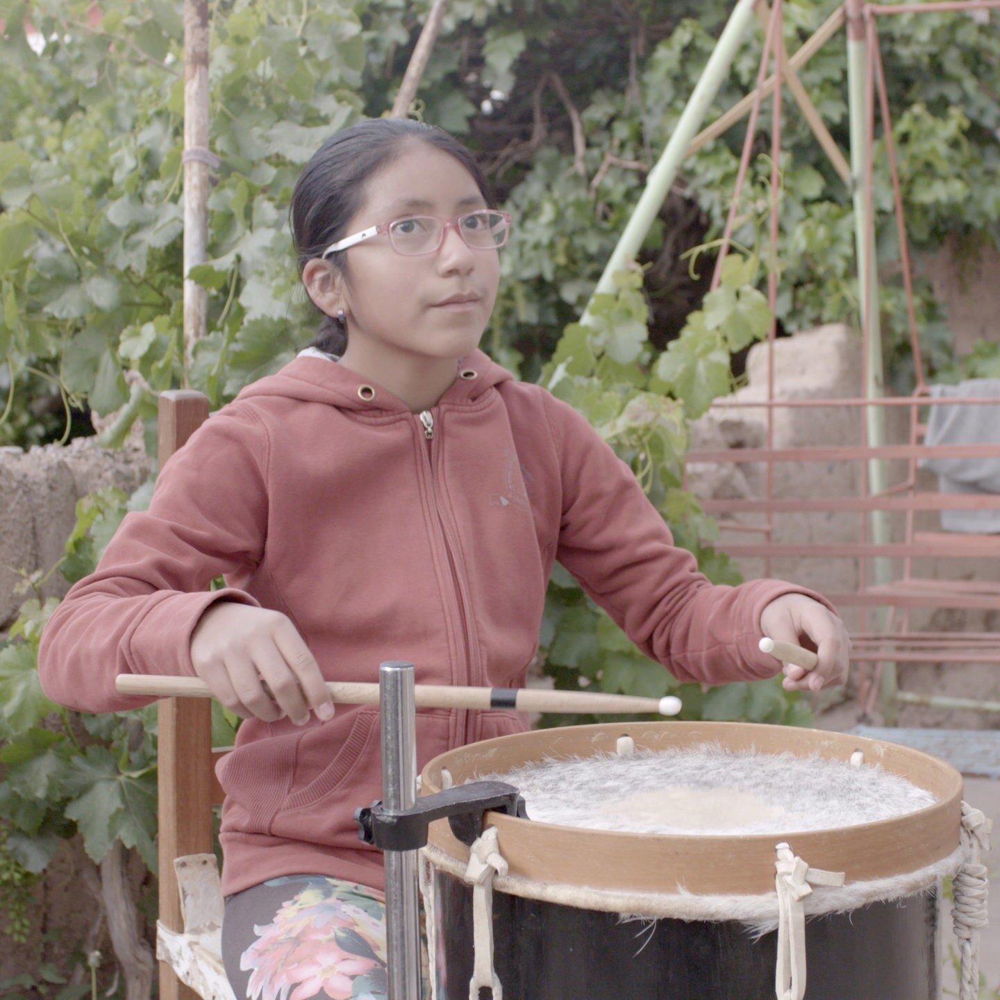 Abril hat mit ihrer Trommel eine Möglichkeit gefunden, ihre Gefühle auszudrücken, die sie sonst selten in Worte fasst, denn sie ist sehr schüchtern. Als Trio musiziert sie zusammen mit ihren älteren Brüdern Atiel (13), und Lian (15) in der Gruppe "Die Geschwister Quiquiza". Die Drei stehen sich sehr nah, sie proben oft und treten auch gemeinsam auf. Als Jüngste im Bunde hört Abril meistens auf das, was ihre Brüder sagen.