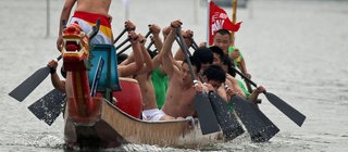 Benutzt werden die traditionellen langen Boote, auf denen bis zu 100 Ruderer Platz haben. Nur Männer übrigens, denn obwohl es schon seit dem 7./8. Jahrhundert Frauenmannschaften gibt, dürfen Frauen nicht auf die Dorfboote. Da halten es die Chinesen wie die Seeleute weltweit: Frauen auf dem Boot, glauben sie, bringen Unglück.