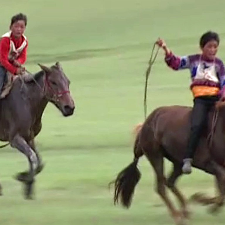 Kinder, Jungen und Mädchen im Alter von 6 bis 10 Jahren, reiten die Pferde über die unglaubliche Distanz von 30 Kilometern. Und doch wird nicht der Junge oder das Mädchen gefeiert, wenn sein Pferd als erstes ins Ziel galoppiert. Geehrt wird das Pferd, und wenn der Lobgesang zu Ehren seines siegreichen Pferdes über die Steppe erklingt, ist der sehnlichste Wunsch eines mongolischen Pferdezüchters in Erfüllung gegangen. Für jeden Mongolen wird Naadam auch in Zukunft mehr als nur ein Sportfest sein: Die Pferde sind der Stolz der Nomaden, der Stolz der Steppe.