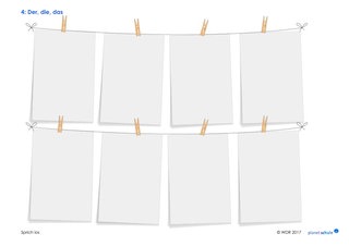 Angelehnt an die Wäscheleine im Film erhalten die Schülerinnen und Schüler die Zeichnung einer Wäscheleine, an die sie Substantive samt der zugehörigen Artikel "hängen" können. Die Wäscheleine kann für die Recherche ganz unterschiedlicher Wortfelder genutzt werden. Alternativ können die Schülerinnen und Schüler mit ihren Smartphones auch Fotos von Gegenständen mit unterschiedlichen Artikeln machen und diese im Plenum präsentieren.