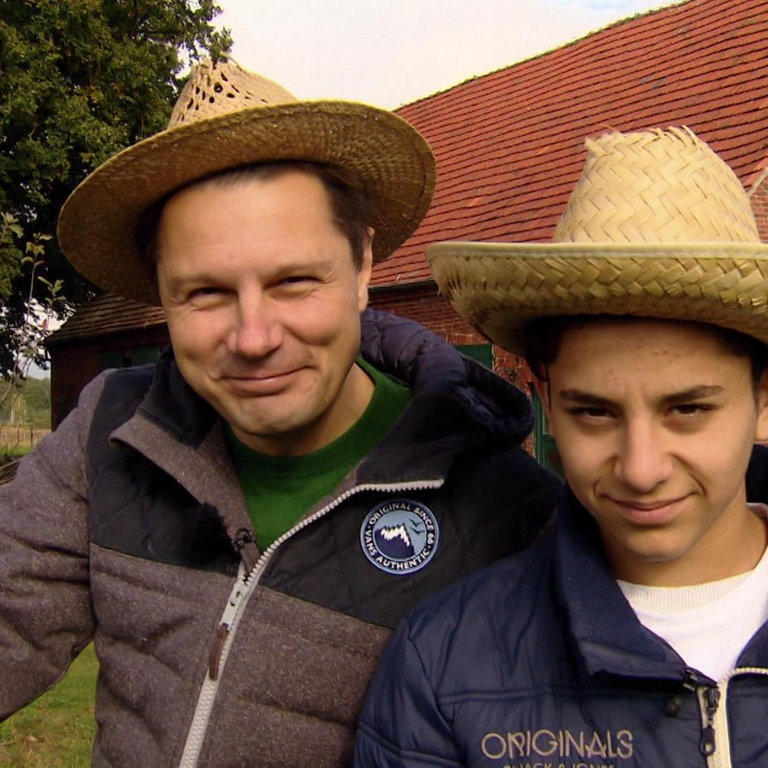 Typisch für die ländliche Umgebung von Münster: Bauernhöfe aus rotem Klinkerstein, Pferde und viele Wiesen. Hier widmen sich Moderator André Gatzke und Iliya heute dem Verb "haben" und wie man es konjugiert – und das im herbstlichen Nieselregen.