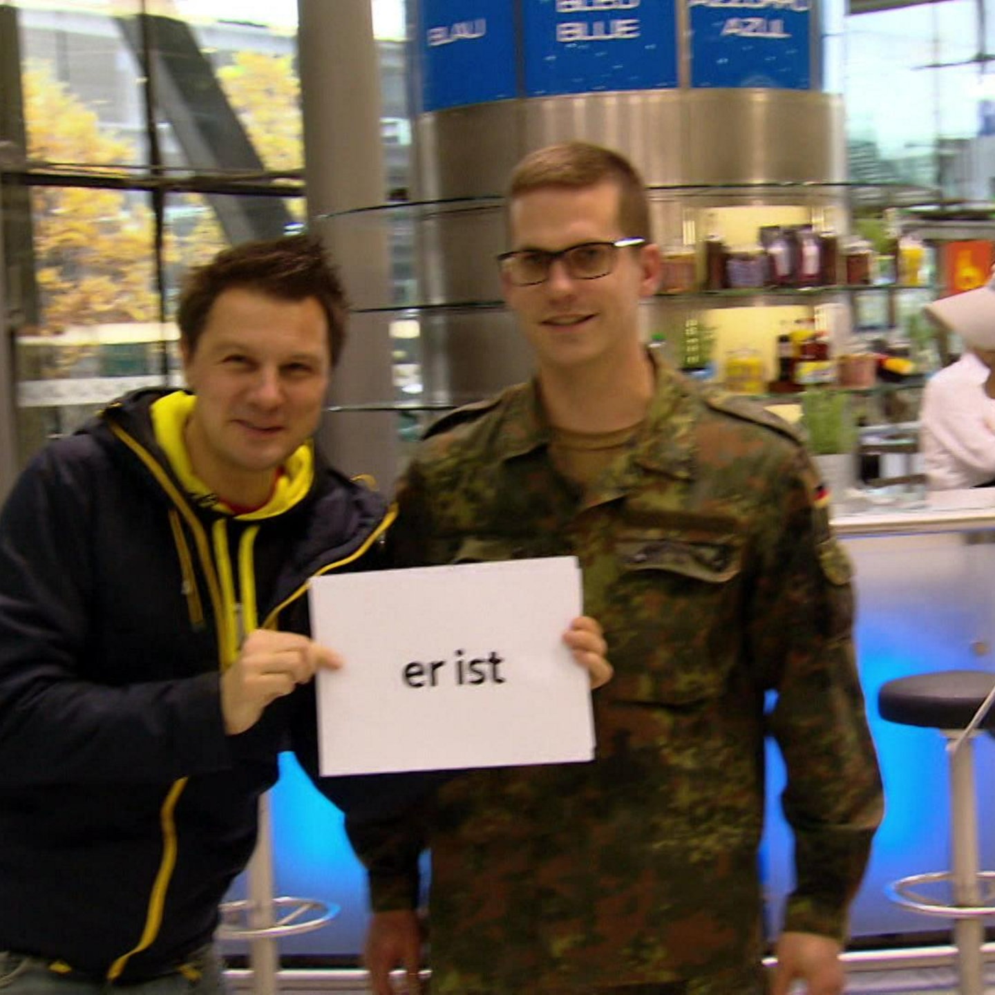 Iliya und Moderator André Gatzke sind am Köln/Bonner Flughafen. Hier treffen sie jede Menge Leute. Genau der richtige Ort, um das wichtige deutsche Verb „sein“ zu studieren. Die Reisenden verraten viel über sich: Manche sind Väter, manche Brüder, andere verraten ihren Beruf. Die beiden treffen Fahrer, Hausfrauen und einen Hausmeister.