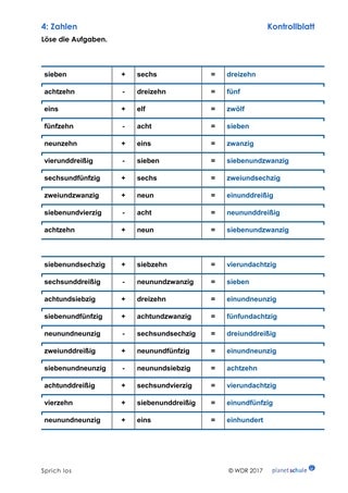| Erarbeitung 2 | Zahlen und Ziffern | Einzelarbeit | Arbeits- & Kontrollblatt 3 |