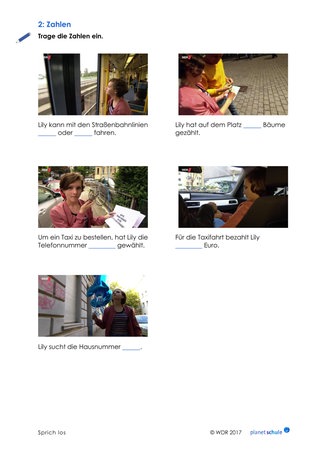 Die Schülerinnen und Schüler sehen den Film. Dabei ergänzen sie Sätze um Zahlen, mit denen Lily es im Laufe des Films zu tun bekommt.