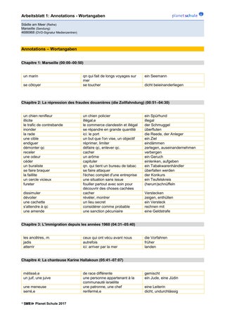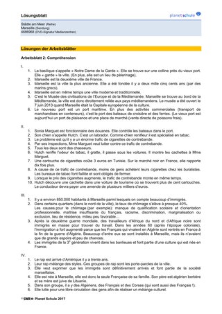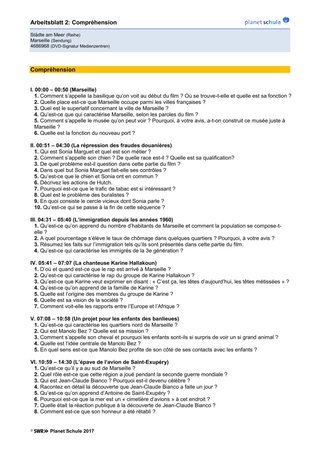 Arbeitsblatt 2: Compréhension: Dieser Fragebogen ist sehr engmaschig und überprüft das Detailverständnis. Die Fragen zur jeweiligen Sequenz sollten am besten erst nach dem zweiten Ansehen bearbeitet werden, nachdem sich die Klasse mit den genauen Aufgabenstellungen vertraut gemacht hat. Diesem detaillierten Hörverstehen sollte immer eine offene Fragestellung danach vorausgehen, was die Schülerinnen und Schüler gesehen und verstanden haben (möglichst in dieser Reihenfolge). Die Beantwortung der Fragen selbst kann arbeitsteilig und am besten in Form von stichwortartigen Notizen geschehen, jedoch möglichst nicht während der Film läuft, damit die volle Aufmerksamkeit auf das Geschehen und die Aussagen gerichtet werden kann. Auch die Versprachlichung von Screenshots kann hier integriert werden. Das Lösungsblatt enthält für alle Fragen jeweils einen ausformulierten Vorschlag. Anhand der Notizen bietet sich dann die Möglichkeit an, das zusammenhängende Sprechen zu üben.