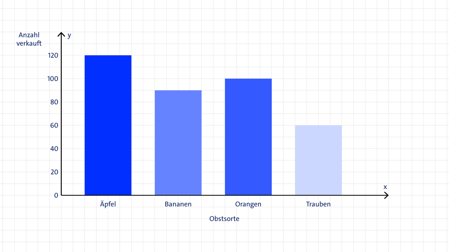 Lisa ist Auszubildende in der Obst- und Gemüseabteilung eines Supermarkts. Sie soll in einem Diagramm darstellen, wie oft bestimmte Obstsorten verkauft wurden. Interpretiere das Diagramm.