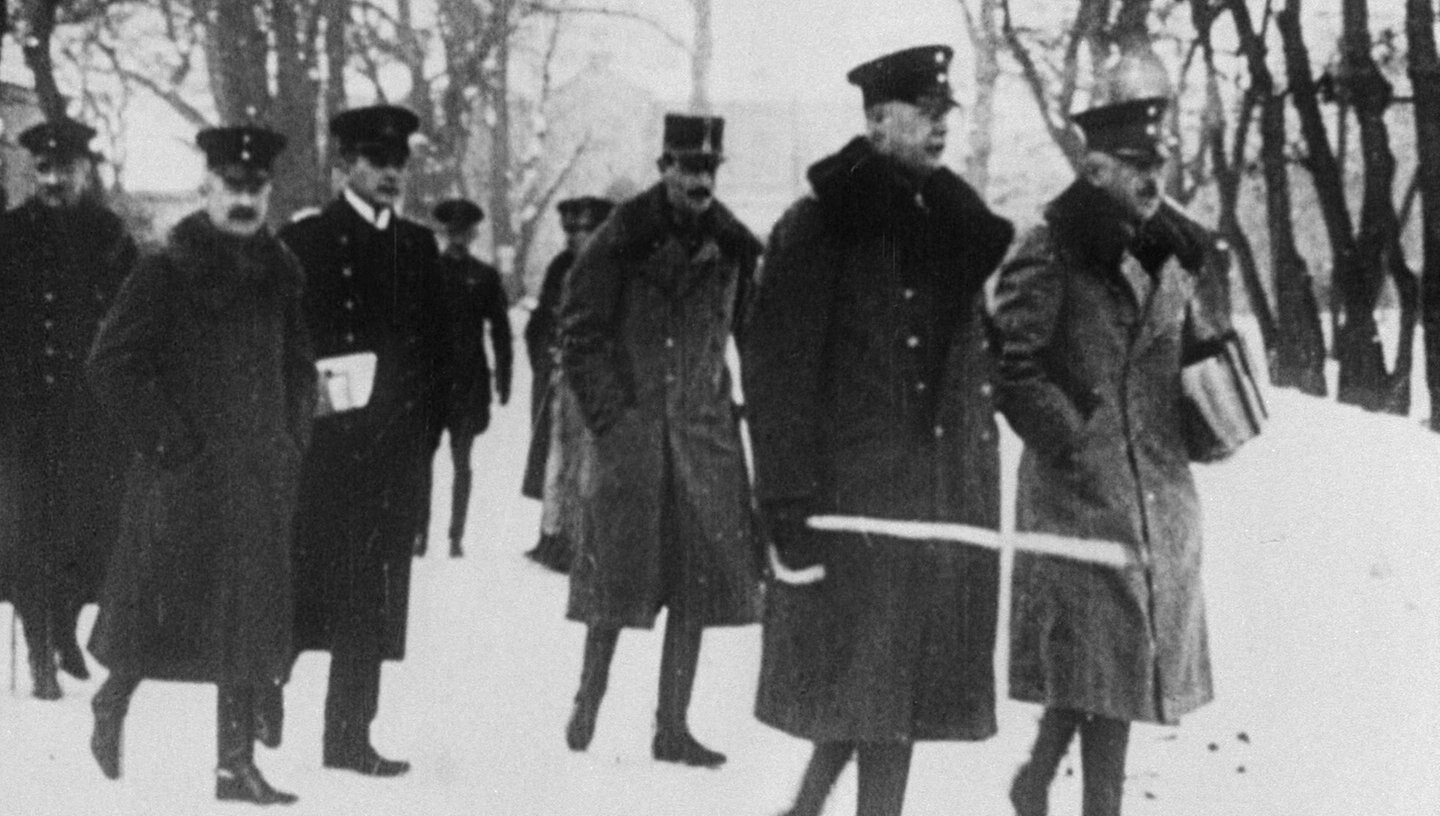 Am 3. März 1918 unterzeichneten Russland und die Mittelmächte den Friedensvertrag von Brest-Litowsk. Während der Oktoberrevolution in Russland waren die Bolschewisten unter Führung von Lenin an die Macht gekommen. Sie fürchteten, ein längerer Krieg könne die innere Stabilität in Sowjetrussland gefährden. Deshalb brachen die Revolutionäre mit den bisherigen Verbündeten und nahmen Friedensverhandlungen mit Deutschland auf. Die Deutschen stellten hohe Forderungen wie die Abtretung riesiger Gebiete in Mittel- und Osteuropa. Sie setzten die Russen durch ihren militärischen Vormarsch so unter Druck, dass diese dem Gewaltfrieden schließlich zustimmten. Die harte Haltung Deutschlands beeinflusste die Gestaltung des Versailler Vertrags, der den Frieden von Brest-Litowsk hinfällig machte.