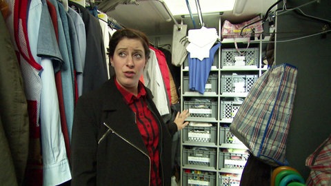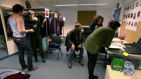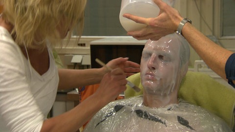 Wer sucht aus, was die Schauspieler anhaben? Wer schaut, dass alle Details stimmen? Und wie werden Gesichter und Frisuren gestaltet? Beim Tatort HAL richtet sich die Kostümbildnerin bei der Auswahl der Kostüme nach einem bestimmten Farbkonzept. Sie besorgt alle Kleidungsstücke und hat dafür ein eigenes Budget. Die Garderobieren achten darauf, dass alle Darsteller stets das Richtige anhaben. Für die Maskenbildnerinnen ist die größte Aufgabe bei dieser Produktion die Herstellung einer Affenmaske.