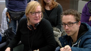 Wie geht es den Schauspielern Richy Müller und Felix Klare damit, dass sie im Tatort Stuttgart seit Jahren die Rollen der Ermittler spielen? Und was ist für sie das Besondere am Tatort? Da die Filmszenen nicht chronologisch gedreht werden, achtet das Continuity darauf, dass die Übergänge zwischen den Szenen stimmen und notiert jedes Detail – auch als Arbeitsgrundlage für den Schnitt. Der Regieassistent arbeitet eng mit der Set-Aufnahmeleitung zusammen und dirigiert die Komparsen.