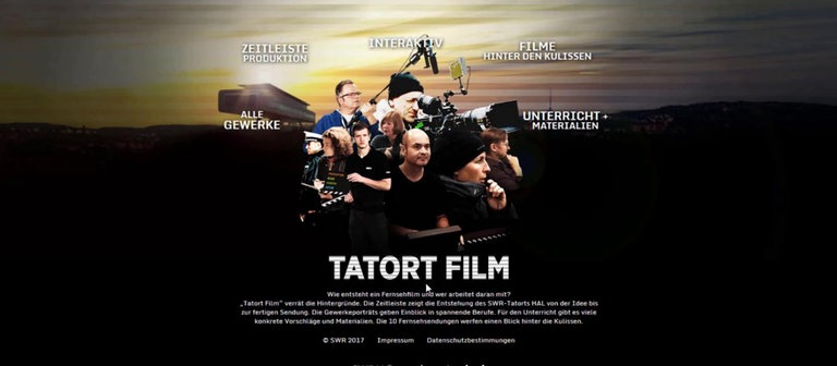 Über die Startseite kann man zur Zeitleiste gehen, die den Produktionsprozess eines Tatorts abbildet. Oder man kann sich über die einzelnen Gewerke informieren, die an einer Fernsehfilmproduktion beteiligt sind. Oder man kann mit den drei interaktiven Tools Schnitt, Farbkorrektur und die Wirkung von Filmmusik ausprobieren. Für den Unterricht gibt es Vorschläge und Materialien, und einen zusammenhängenden Blick hinter die Kulissen bieten die 10 Making-of-Filme.