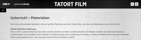 Mithilfe von Unterrichtsmodulen, die auf das Material der Plattform zurückgreifen und sich auf den Tatort „HAL“ beziehen, erhalten Lehrkräfte die Möglichkeit, Filmanalyse handlungsorientiert zu vermitteln.