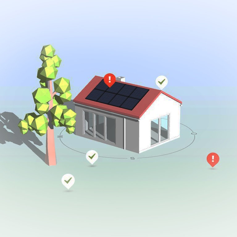 In der Photovoltaik-Anlage verwandeln Solarzellen die Sonnenstrahlung direkt in elektrische Energie. In der Simulation kann zwischen verschiedenen Städten, dem Neigungswinkel des Hausdachs, der Ausrichtung der Solarzellen, der Verschattungsart und dem Solarzellentyp gewählt werden. An welchem Standort lohnt sich eine Solaranlage? Nach wie vielen Jahren hat die Anlage die Kosten wieder eingespielt? In der Solardach-Simulation lassen sich verschiedene Konstellationen erproben.