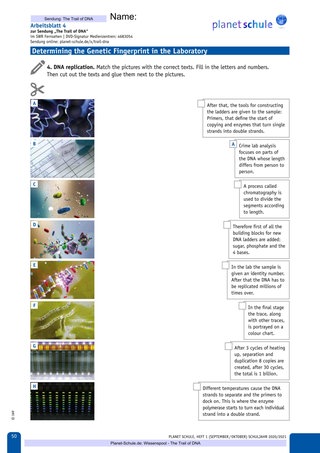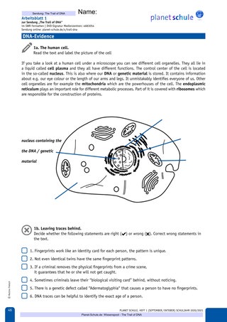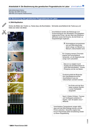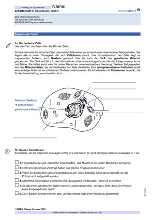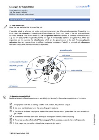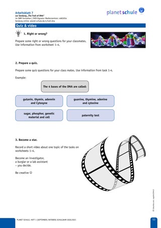 | Erarbeitungs-phase I | Lehrkraft zeigt Abschnitt 1 des Films – DNA Evidence mit Ton und bespricht gemeinsam Task 1a und 1b | Plenum | Film TC 00:00-02:00, Arbeitsblatt 1, Vokabelblatt |