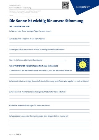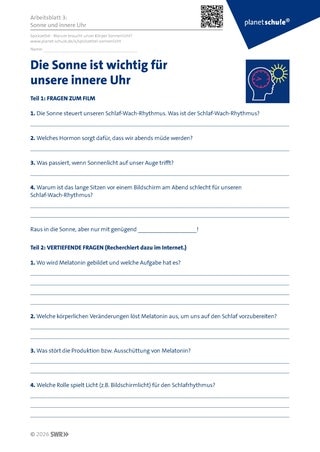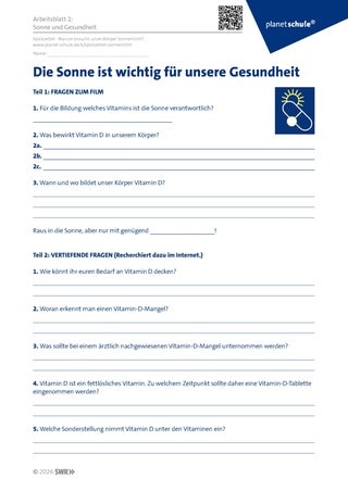 Material: Film „Warum braucht unser Körper Sonnenlicht?“, Arbeitsblätter