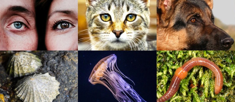 Mensch, Katze, Hund, Nautilus, Napfschnecke, Qualle und Regenwurm sehen alle anders. Dieses Multimedia-Element vergleicht die verschiedenen Augen miteinander.