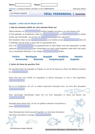 Arbeitsblatt zum Saugnapf