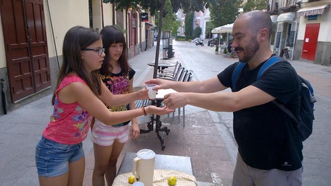 Gabriel fragt sich, ob es in Madrid auch Kioske gibt. Mia nimmt ihn mit zum Einkaufen in den nahegelegenen „Chino“ und zeigt ihm, welche Geschäfte es in ihrer Straße noch gibt.