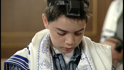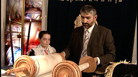 Drei Beispiele jüdischen Glaubens: Der 13-jährige Alon bereitet sich auf seine Bar Mizwa vor, bei der er zum ersten Mal während des Gottesdienstes vor der ganzen Gemeinde einen Gebetstext aus der Tora vorträgt.