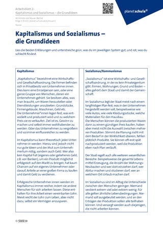 Vertiefend kommt dazu das begriffserklärende Arbeitsblatt (Arbeitsblatt 2) zum Einsatz – in Einzel- oder Partnerarbeit. Zur Besprechung/Diskussion werden im Plenum beispielhaft einige Einschätzungen der Schüler:innen vorgelesen (Vor- bzw. Nachteile des jeweiligen Wirtschaftssystems). Zur Binnendifferenzierung gibt es eine Bonusaufgabe mit Gegenwartsbezug.