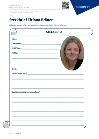 Ansehen des Filmes und Bearbeitung von Arbeitsblatt 3 (Steckbrief Tiziana Bräuer) in Einzel- oder Partnerarbeit, um Tiziana Bräuer näher kennenzulernen.