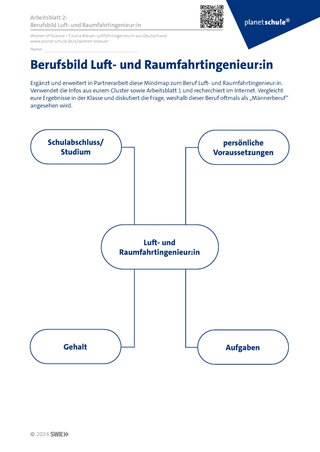Anschließend wird im Plenum das Vorwissen der Schüler:innen zum Beruf Luft- und Raumfahrtingenieur:in gesammelt und schriftlich (an der Tafel o.ä.) in Form eines Clusters festgehalten.