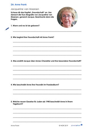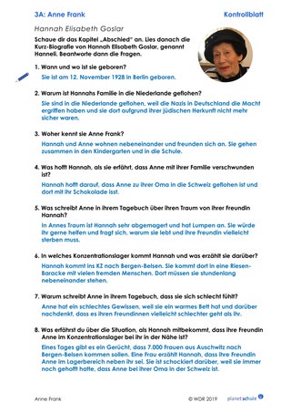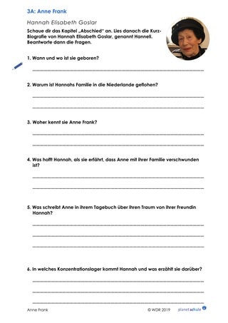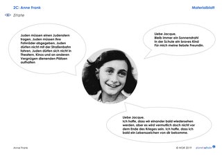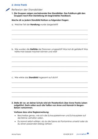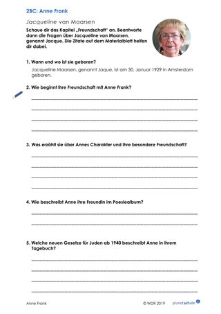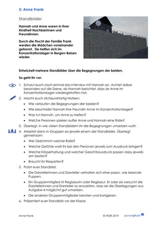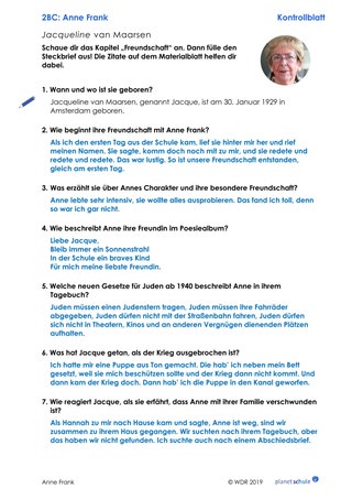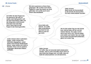 In dieser Unterrichtseinheit werden zwei prägende Szenen aus den Kapiteln „Freundschaft“ und „Abschied“ zum Anlass genommen, dass sich die Schülerinnen und Schüler vertiefend mit der Perspektive der beiden Freundinnen Anne Franks auseinandersetzen.