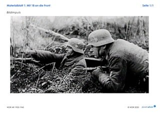 Die Lehrkraft informiert zunächst darüber, dass die Wehrmacht im Zweiten Weltkrieg insgesamt 18 Millionen Männer zum Kriegsdienst einzog und dass viele davon noch sehr jung waren. Die Schülerinnen und Schüler stellen Vermutungen an, wie es für junge Männer gewesen sein muss, plötzlich zum Kriegsdienst eingezogen zu werden.