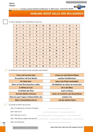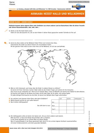 Dann erklären Sie, dass diese beiden Kinder sich nun im Film vorstellen werden. Zeigen Sie den Film nun ganz. Er ist mit ca. 15 Minuten so kurz, dass er gut am Stück angesehen werden kann. Direkt anschließend können die Kinder über ihre Eindrücke berichten. Hier bietet sich eine kurze offene Rückmeldephase an.