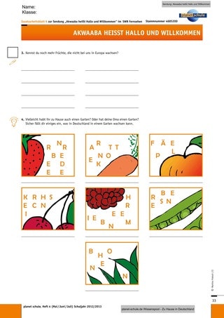 Unterrichtsvorschlag ab Klasse 3, Grundschule