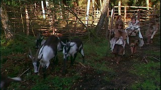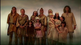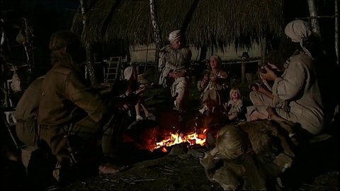 „Ich will zurück in die heutige Zeit“, jammert der kleine Taliesin im Steinzeitdorf. Denn die Steinzeit zeigt sich - gleich nach Beginn der Zeitreise - von ihrer härtesten Seite.