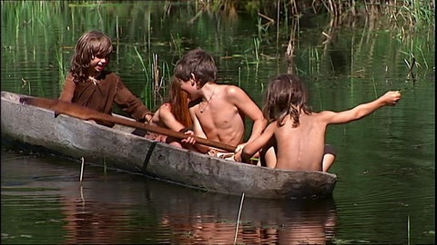 „Ich will zurück in die heutige Zeit“, jammert der kleine Taliesin im Steinzeitdorf. In der Tat: Die Steinzeit zeigt sich, gleich nach Beginn der Zeitreise, von ihrer härtesten Seite. Es gießt wie aus Kübeln, der Boden weicht auf, das Essen ist karg und Taliesin ist übel. Es gibt keine Spielsachen, und Fernseher und Kühlschrank sind natürlich auch noch nicht erfunden. Abenteuer oder Horrorcamp – was werden die nächsten Wochen bringen? Ronja, Till, Taliesin und die drei anderen Kinder sind gespannt. Mit Regenmänteln aus Wildschweinfell erkunden sie das Dorf. Gar nicht so schlecht hier. Bäume zum Klettern, ein Fußball aus Moos und ein See mit einem Floß. Aber sehr schnell wird klar: Steinzeitleben bedeutet harte Arbeit. Alle müssen mit anpacken. Auch die Kinder. Endlich wird das Wetter besser. Nun flutscht auch der Alltag. Ziegen hüten, Pilze sammeln und fischen sind Aufgaben der Kinder. Steinzeitarbeit kann auch viel Spaß machen. Und für Erkundungsfahrten auf dem See, schwimmen, singen, Ritterkämpfe im Wald und Frösche fangen, bleibt trotzdem noch genug Zeit. „Die Steinzeit, das war so schön. Ich würde gerne noch einmal zurück“, sagt Ronja am Ende des Steinzeitsommers.