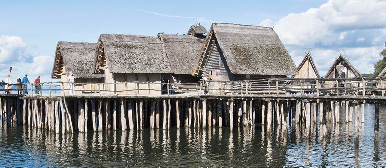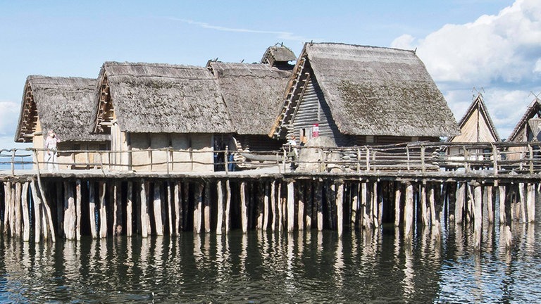 | Kleidung und Wohnen Sendung: Harter Alltag | Modelldächer mit Regen aus der Gießkanne konfrontieren und Wetterfestigkeit beurteilen | einen Pfahlbau oder ein Steinzeithausdach im Modell bauen Steinzeitschuhe basteln |